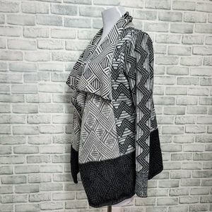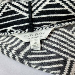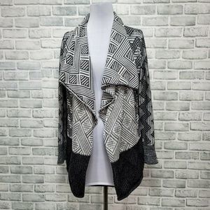Lucky Brand Womens L Knit Open Front Draped Collar Cardigan Sweater Geo Pattern