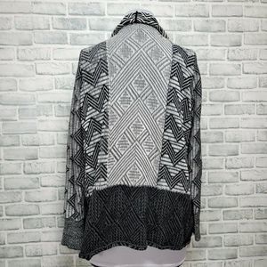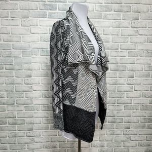 Details: Knit Open Front Draped Collar Cardigan Sweater Geo Pattern