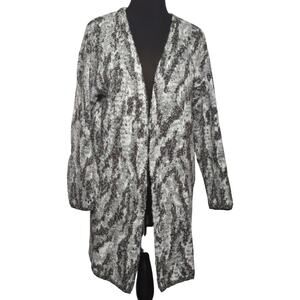 Lucky Brand Womens L Open Front Cardigan Gray Wool Blend Knit Sweater Coat