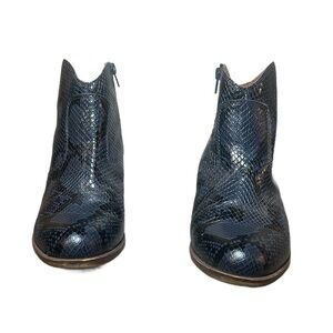 Lucky Brand Womens LK-Belia Blue Black Leather Snake Skin Print Booties