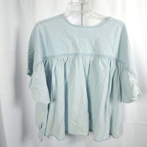 Lucky Brand Womens Large Blue Shrred Button Front Chambray Crop Top Shirt