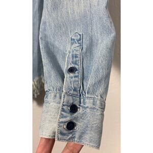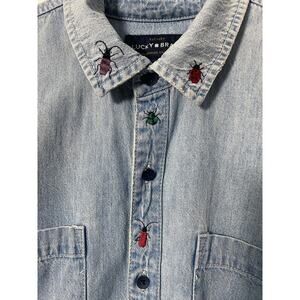 Lucky Brand Women's Lightweight Cotton Denim Button Up Shirt Embroidered Bugs Ladybug