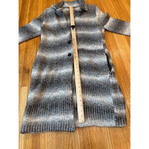 Lucky Brand Womens Longline Button Cardigan Sweater L Black & White Knit