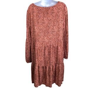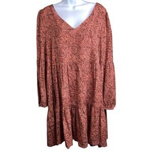 Lucky Brand Women's Maroon Paisley Tiered Dress Size L Western Bohemian Flowy
