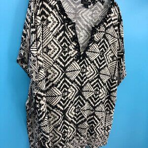 Lucky Brand Women’s Medium Boho Tribal Diamond Pattern V-Neck Blouse