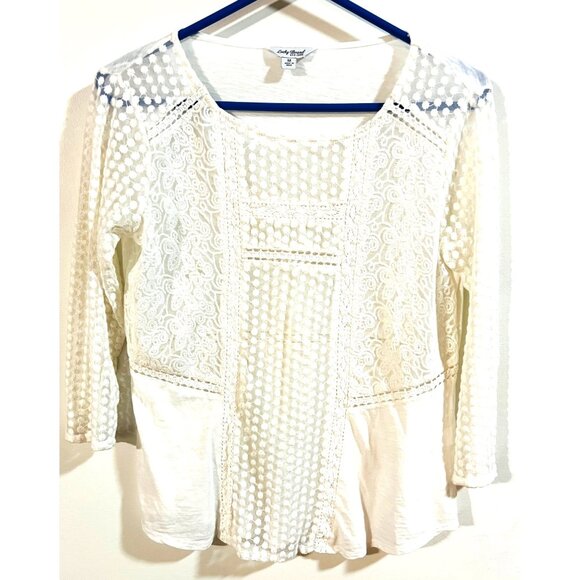 Lucky Brand Womens Medium Cream Lace & Popcorn Blouse