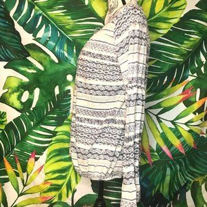 Lucky Brand Women's Medium Grey Beige Long Sleeve Boho Fall Cute Blouse