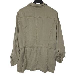 Lucky Brand Womens Military Style Shacket Sz Large Cinch Waist Roll Tabs Olive