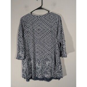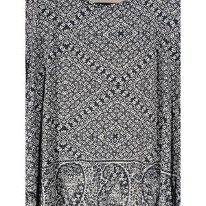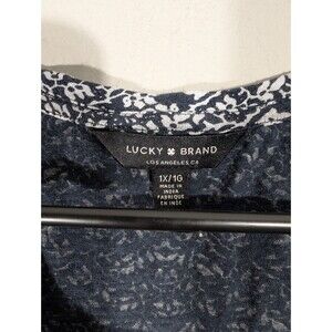 Lucky Brand Womens Navy Paisley Print 3/4 Sleeve Top Sz 1X Casual Mature Boho