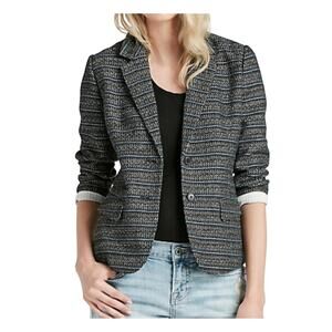 Lucky Brand Womens Navy Tweed Blazer with button closure and full lining, Size 4