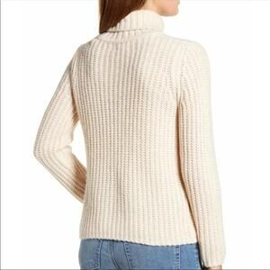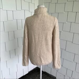 Lucky Brand Women's Oatmeal Chunky Traveling Ribbed Knit Turtleneck Sweater sz L