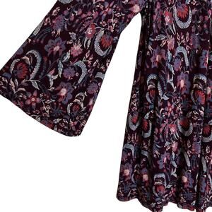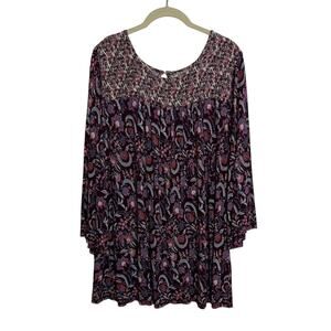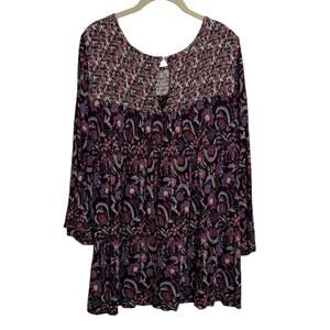Lucky Brand Women's Peasant Blouse Size 1X Purple Paisley Floral Smocked Bodice