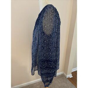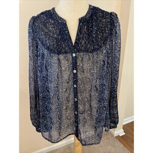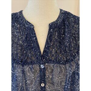 Lucky Brand Womens Peasant Blouse Tunic Size S Button Front Smocked Boho Navy