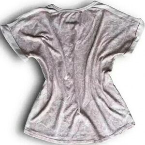Keywords: Lucky Brand, women's t-shirt, pink, paisley, short sleeve, velvet burnout, polyester, spandex, casual wear, comfortable fit, machine washable, pre-owned, coquette fairy romantic preppy y2k