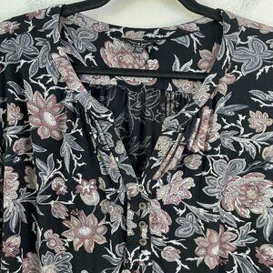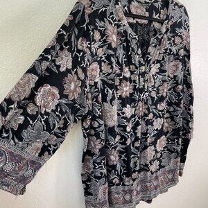 Lucky Brand Womens Plus 3X Floral Boho Blouse 3/4 Sleeve Shirt Top