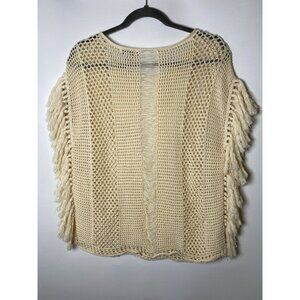 Lucky Brand Women's Poncho Frill Trim Size Medium Cream 100% Cotton