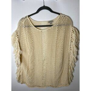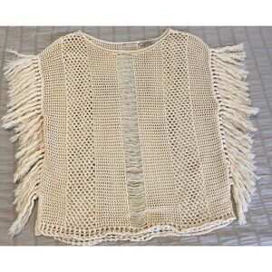 Lucky Brand Women's Poncho Frill Trim Size Medium Cream 100% Cotton