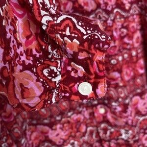Lucky Brand Womens Red Floral Collar Button Down Top Shirt XL Red Rayon