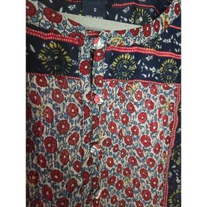 Lucky Brand Women's Red and Blue Boho Floral 3/4 Sleeve Blouse Size Small
