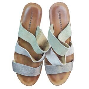 Lucky Brand Women’s Rileigh Leather Suede Rose Tan Gold Slide Sandals size 8.5