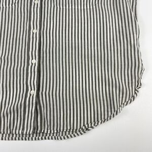 Lucky Brand Womens Rolled Sleeve Striped Button Down Shirt Relaxed Grey White SM