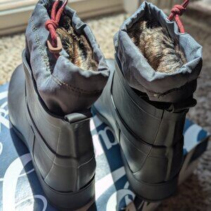 Lucky Brand women's size 9 black rubber boots with cozy faux fur removable inserts, very gently used, super cute and useful!