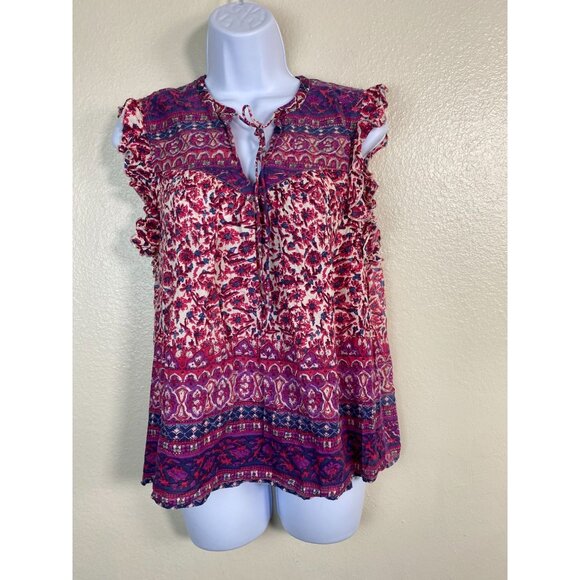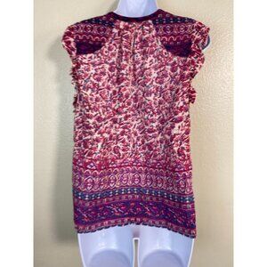 Lucky Brand Womens Ruffle Sleeve Floral Boho Top size Medium Modal Peasant