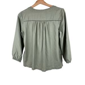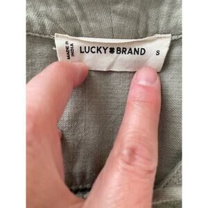 Lucky Brand Women's Size S Green Pintuck Pleated Lace Up Peasant Top. Pre-owned in good condition, no rips or holes noted. There are 2 very faint stains on the front (see photos).