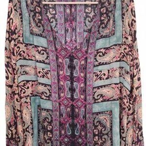 Lucky Brand Women's Sheer V Neck Boho Paisley Print Blouse Size Medium