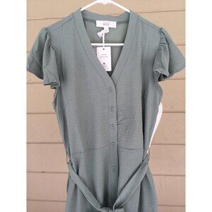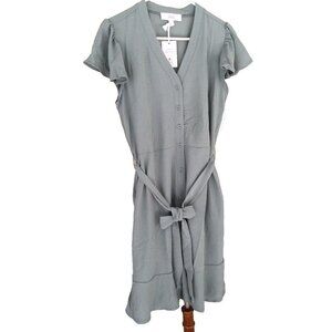Lucky Brand Women's Shirt Dress Flutter Sleeves Size Large Summer Green Belted