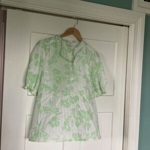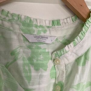 Lucky Brand Women's Short Sleeve Ruffle Collar Feminine Popover Top Sz Large