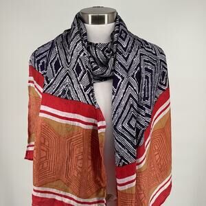 Lucky Brand Women’s Silk Oversized Scarf Wrap Tribal Geometric Print 27 x 81