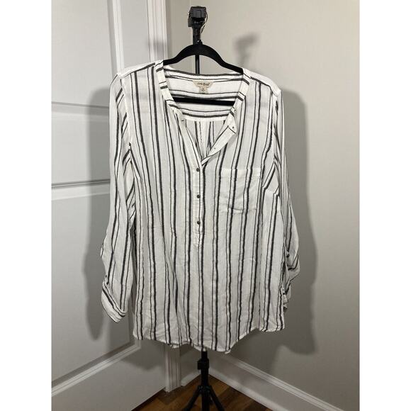 Lucky Brand Womens Size 1X Striped Long Sleeve Button Up Shirt