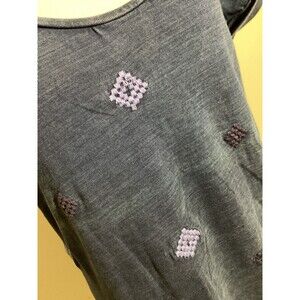 Lucky Brand Women's Size M Blue Embroidered Diamond Short Sleeve Blouse