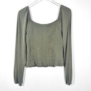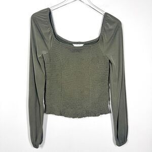 Lucky Brand Womens Size Medium Olive Green Smocked Square Neck Knit Long Sleeve