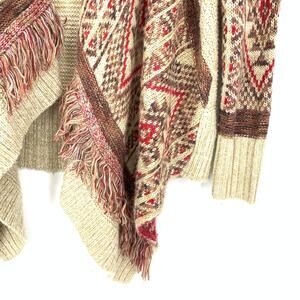Lucky Brand Women's Size Medium Waterfall Front Cardigan Sweater Beige Red Print