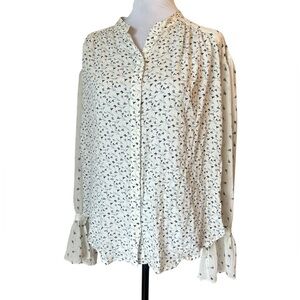 Lucky Brand Women’s Size Small Cream Navy Mix Print Floral Button-Down NWT