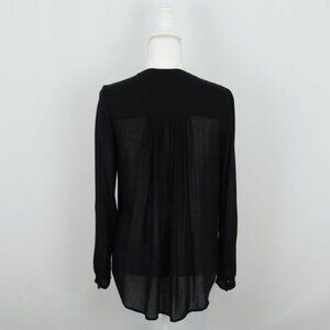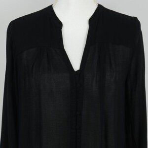 Lucky Brand Women's Small Black Semi-Sheer Pleated V-Neck Button Up Shirt