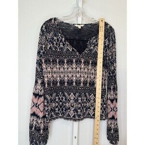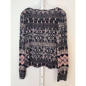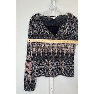 Lucky Brand Women’s Small Boho Top Navy Pink Ikat Print Long Sleeve Cotton Modal