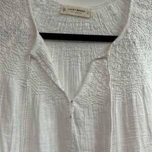 Lucky Brand Women's Smocked White Peasant Blouse Sz Small NEW
