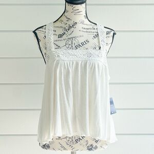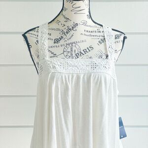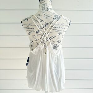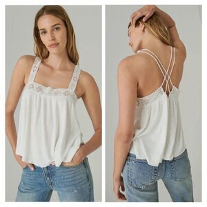 Lucky Brand Women's Square Neck Lace Up Tank Flowy, Crop, Criss Cross Large NWT