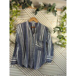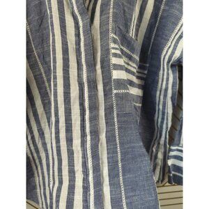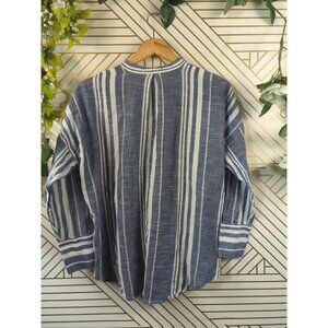 Lucky Brand Women's Striped Shirt Top Button Front Lightweight Oversized Blue Sm