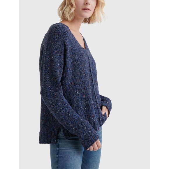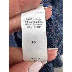 Lucky Brand Womens Sweater Sz L Chunky Knit Blue Speckled V-Neck Slouchy Comfy