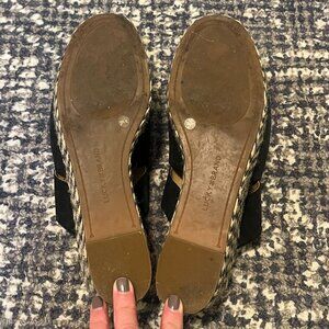 Lucky Brand Women's Sz 10 Genzy Black Leather Slip-On Espadrille Wedge Sandal