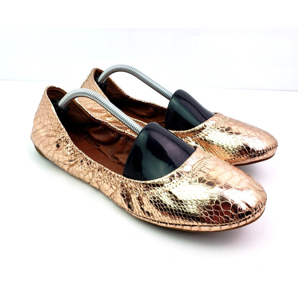 Lucky Brand Emmie Womens Size 10 Rose Gold Snake Skin Pattern Slip On Ballet Flats Shoes