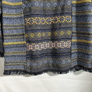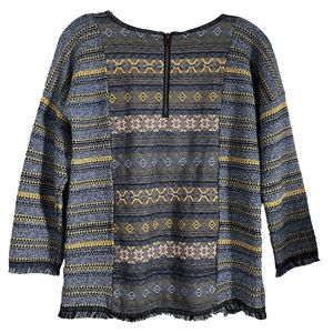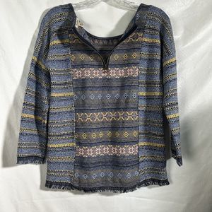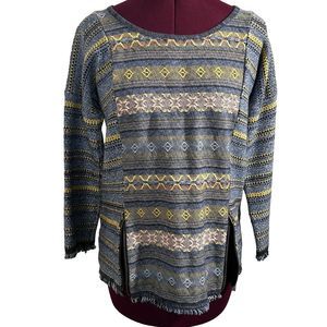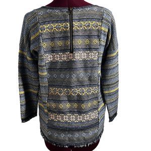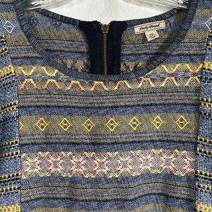 Lucky Brand Womens Sz XS Escape Bohemian Aztec Blue Sweater Exposed Zippers