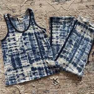 Lucky Brand Womens Tie Die Tank and Pants Pajama Set Blue Size Small Cozy Soft