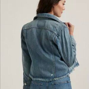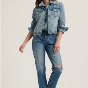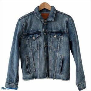 Lucky Brand Womens Tomboy Blue Denim Distressed Jacket Medium