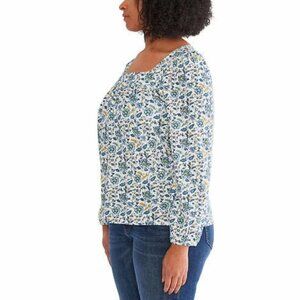 Lucky Brand Women's Top Cream Square Neck Top Boho Floral Long Sleeves NWT