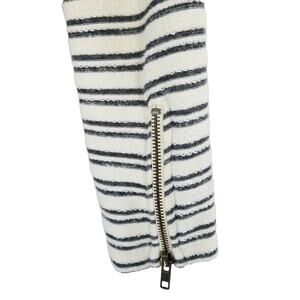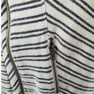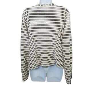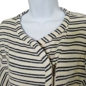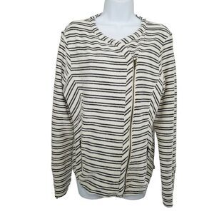 Lucky Brand Womens Top Large Black Ivory Stripe Zipper Heavyweight Shirt Jacket